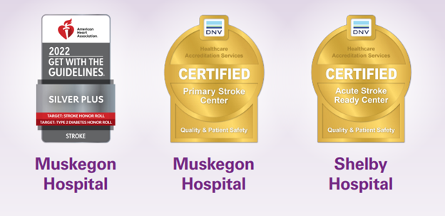 Trinity Health Muskegon is certified as a Primary Stroke Center, which recognizes hospitals that meet standards to support better outcomes for stroke patients. Trinity Health Grand Rapids is certified as a Comprehensive Stroke Center, recognizing that the hospital meets the standards to treat the most complex stroke cases.