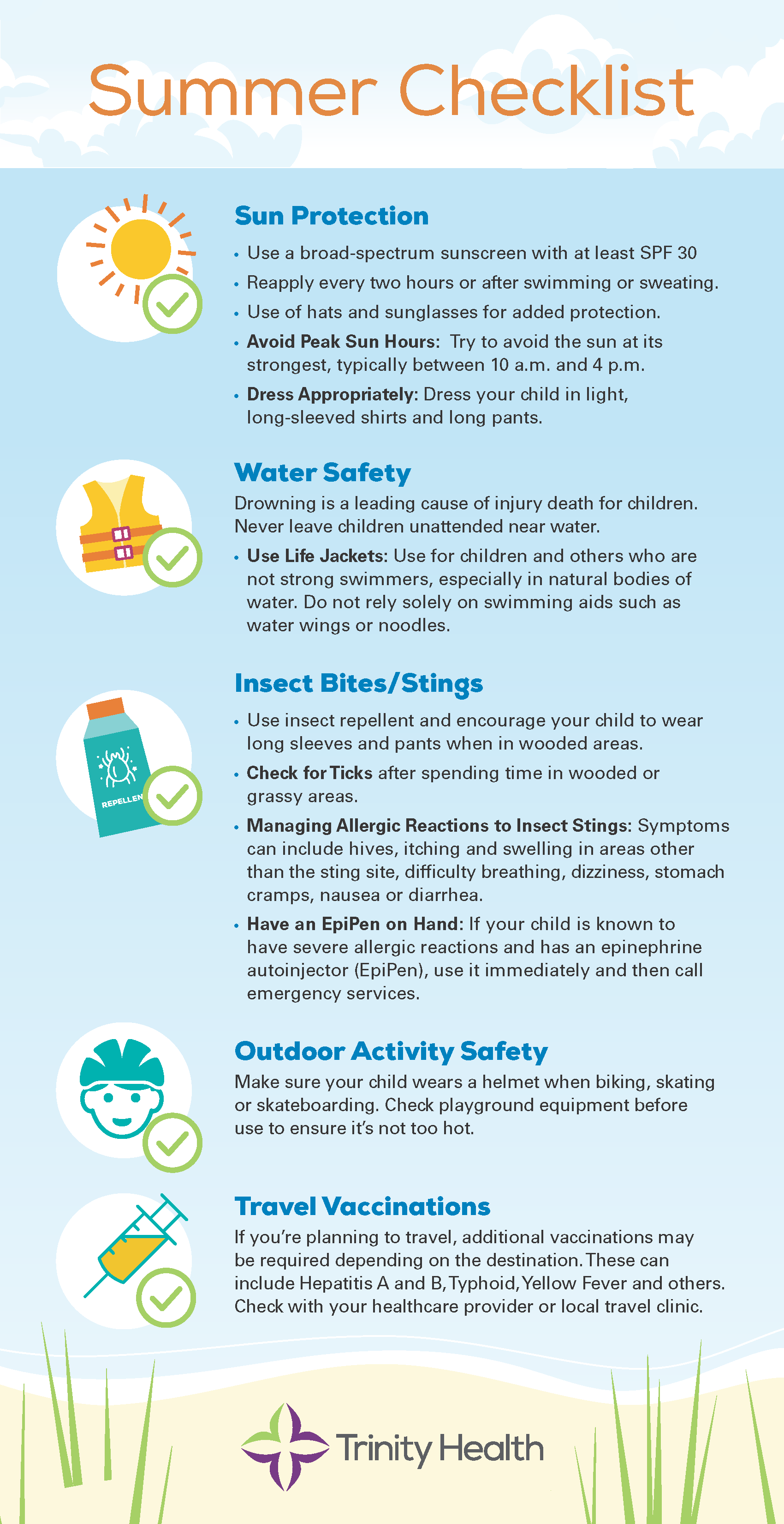 - Dress Appropriately: Dress your child in light, long-sleeved shirts and long pants.